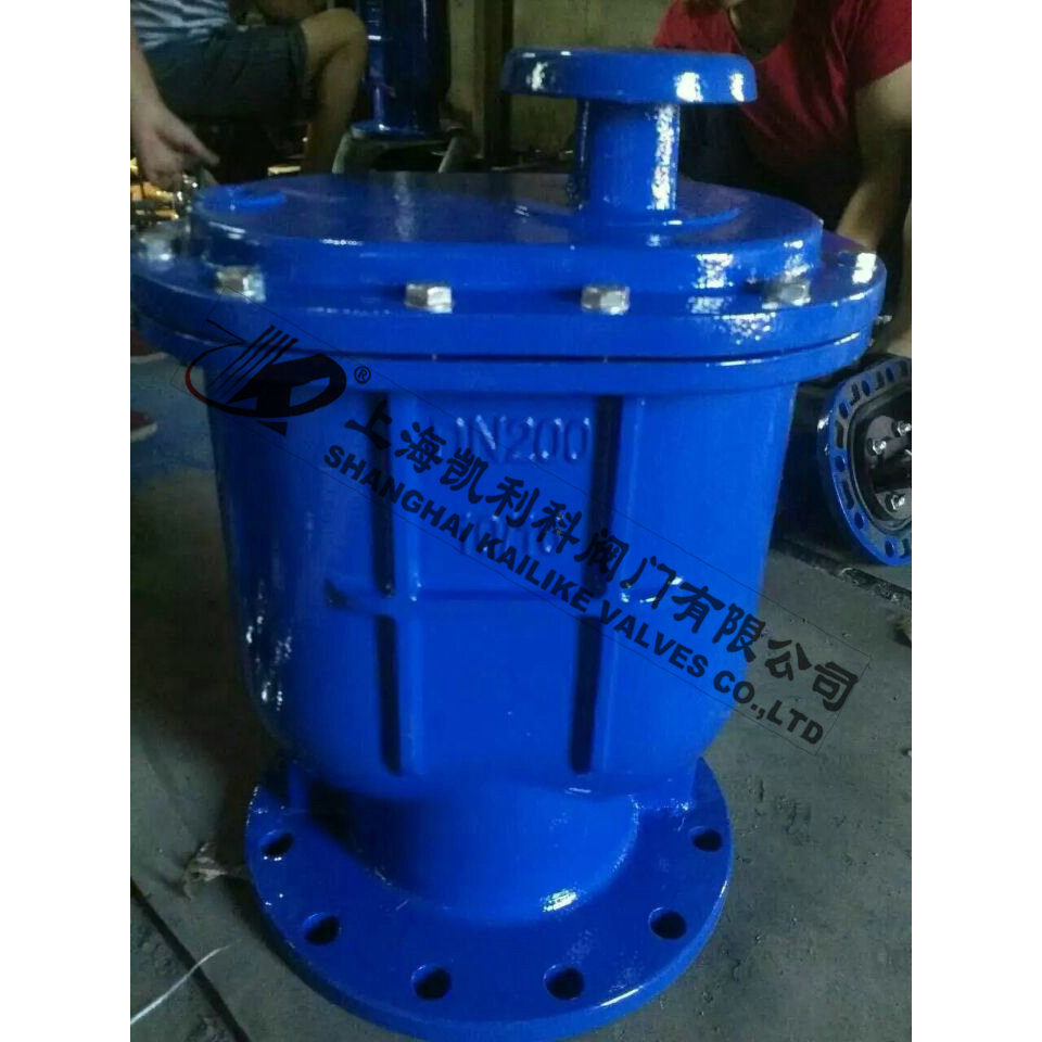 當管內開始注水時,塞頭停留在開啟位置,進行大量排氣,當空氣排完時,閥內積水浮球被浮起,傳動塞頭至關閉位置,停止大量排氣;當管內水正常輸送時,如有少量空氣聚集在閥內到相當程度,閥內水位下降,浮球隨之下降,此時空氣則由小孔排出。當抽水機停止,管內水流空時,或遇管內產生負壓時,此時塞頭開啟,吸入空氣確保管線安全。