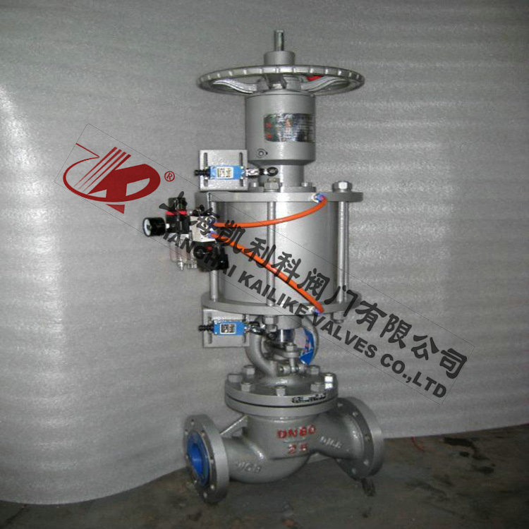 使用壓縮空氣作為動(dòng)力源的閥門大部分采用遠(yuǎn)程控制,由主控室手動(dòng)或自動(dòng)觸發(fā)動(dòng)作指令,使進(jìn)、排氣電磁閥動(dòng)作,向執(zhí)行機(jī)構(gòu)內(nèi)供、排壓縮空氣。壓縮空氣作用在活塞或隔膜上,克服閥門動(dòng)作的摩擦力和閥桿上的彈簧彈力,從而壓下(對(duì)于失氣開閥門)或提起(對(duì)于失氣關(guān)閥門)閥桿,帶動(dòng)閥芯上下動(dòng)作,使閥門打開或關(guān)閉。