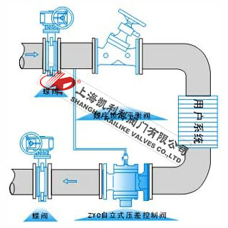 4、便流量的水平之平、干管入口處以及在安裝溫控閥、調節閥等的動態系統的支、干管入口處、安裝自立式壓差控制閥可使被控系統、回水管之間的壓差保持恒定值。